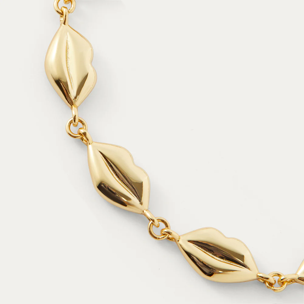 Featuring a chain of 14k gold plated sterling silver 3D lip studs, this charming Luna bracelet makes a signature Lulu statement. As ever, it’s all in the detailing - notice the cute lip-detailing on the T-bar fastening, too.