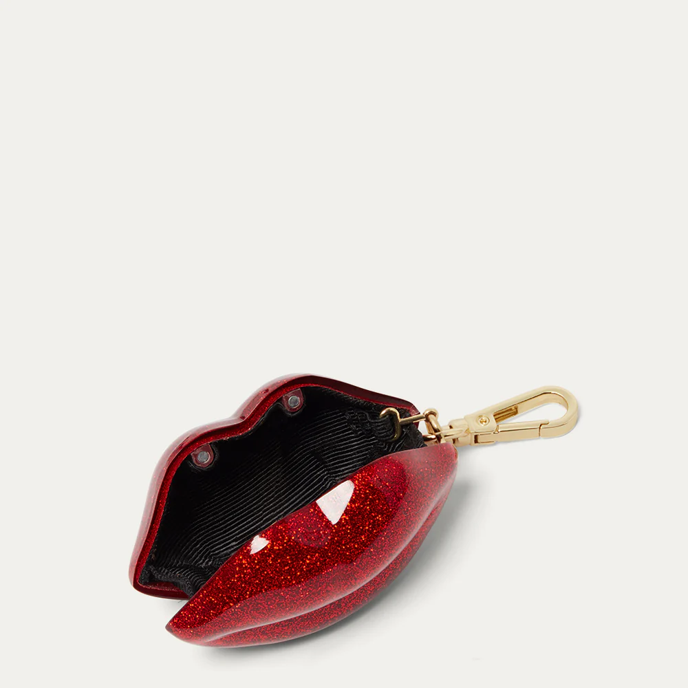 Add some sparkle to your everyday with our mini acrylic lip keyring in Lulu Red glitter. This playful style opens to hold coins, too.