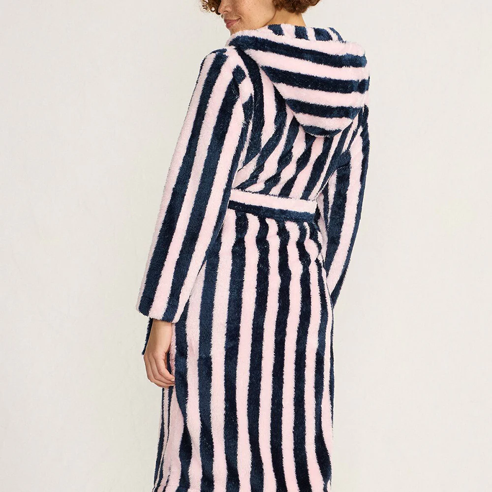 Part of our collaboration with Lands' End. This cosy, super-soft fleece dressing gown in Navy and Pink stripes wraps you right up in Lulu's brand of fun. Candy stripes meet spa maximalist in vivid colours.