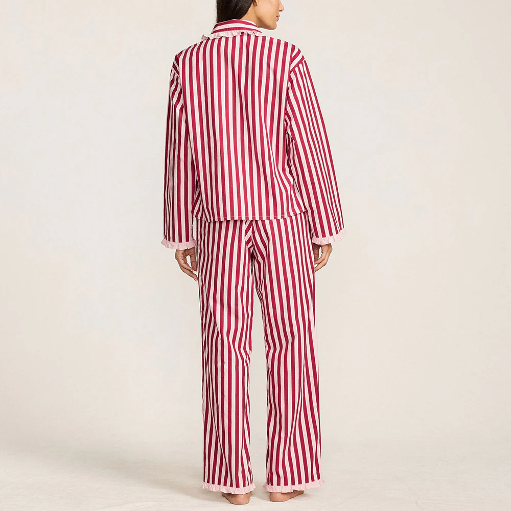 RED & PINK STRIPED PETER PAN COLLAR SLEEP SET