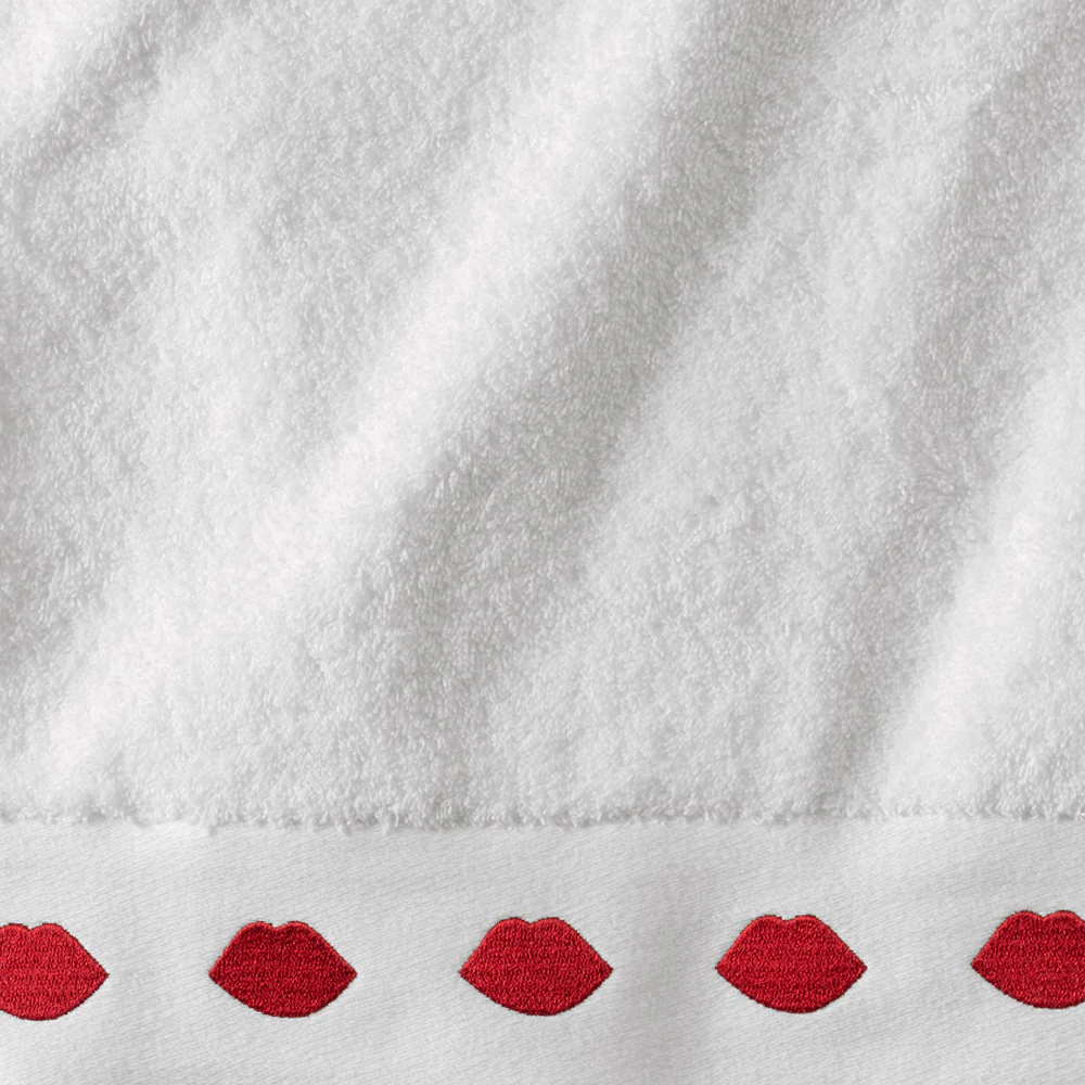 WHITE EMBROIDERED LIP HAND TOWEL